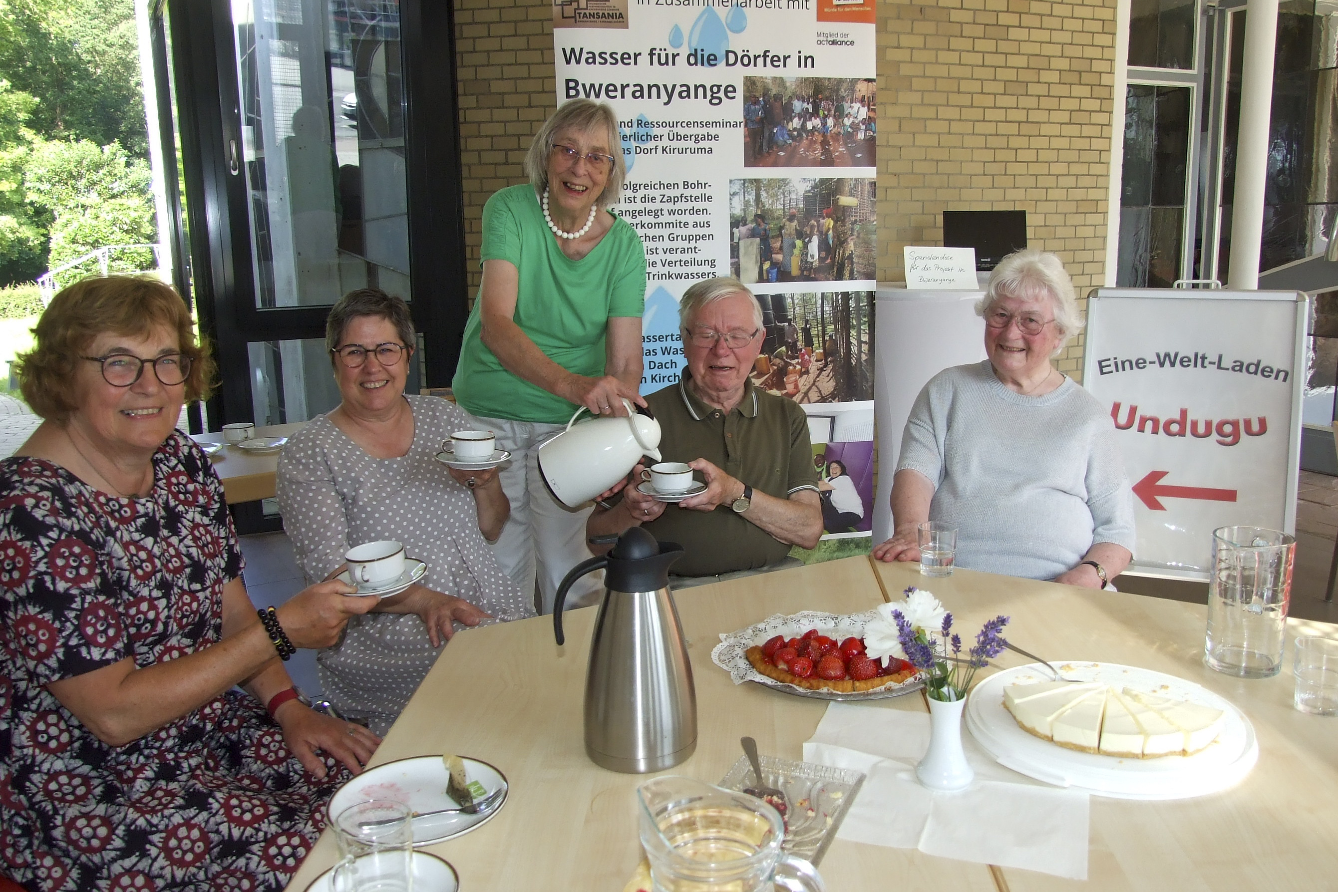 Zu Kaffee, Tee und Kuchen ist jedermann eingeladen. Mit Spenden wird das Partnerschaftsprojekt „Brunnenbau in Tansania“ unterstützt – ein Vorhaben im Partnerschaftskirchenkreis Karagwe nahe dem Viktoriasee. Der Erlös aus jeder Tasse Kaffee und jedem Stück Kuchen fließt direkt dorthin. Für dieses Projekt hat sich die Gruppe mehrheitlich entschieden.