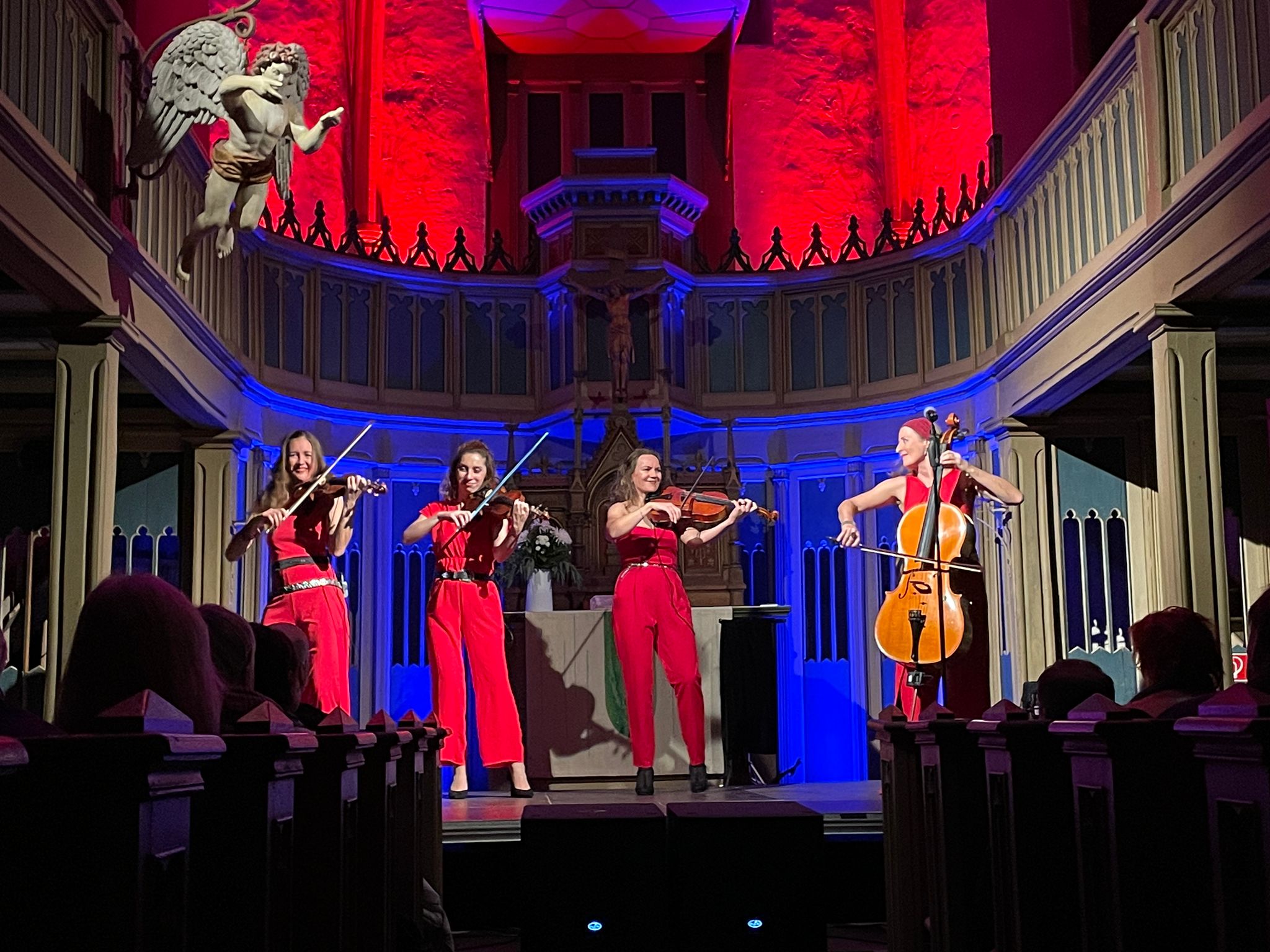 Wenig später brandete erster Applaus durch St. Nikolaus, als das Quartett „La Finesse“ – sichtlich gut gelaunt und ganz in Rot gekleidet – die Bühne betrat. Mit Musik von Antonio Vivaldi bewiesen die Musikerinnen gleich zu Beginn und unmissverständlich, dass sie eine große Menge Energie mitgebracht hatten. „Hier kann heute Abend gar nicht die reale Temperatur gelten, sondern nur, wie wir uns im Inneren fühlen – und das ist jetzt schon spürbar warm und kuschelig“, machte eine der Künstlerinnen deutlich.