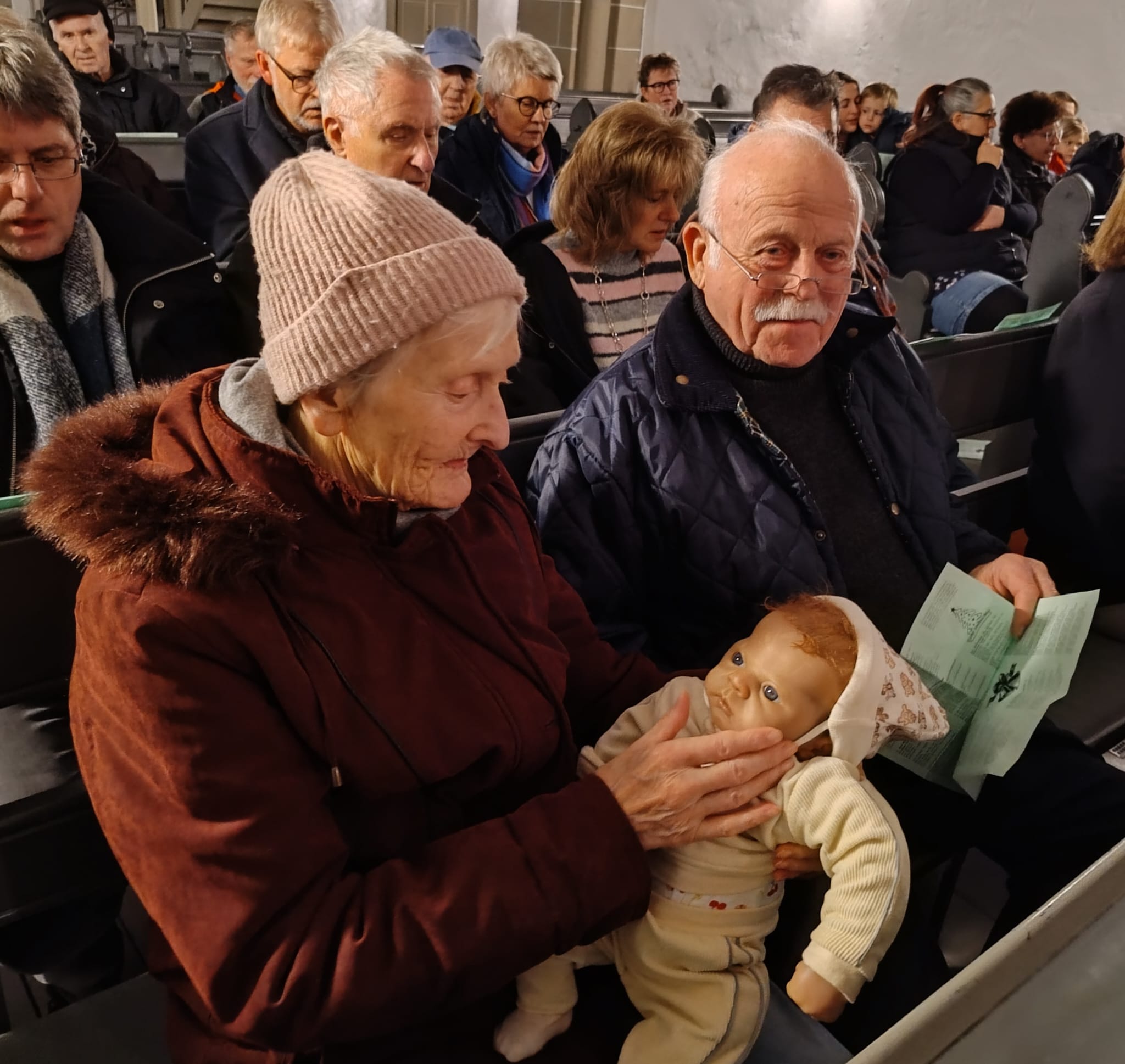 Besonders innig wurde die Andacht, als Pfarrer Beening die Jesus-Puppe aus der Futterkrippe holte und diese von den Gästen zärtlich auf den Armen gehalten wurde. Da wurden die Weihnachtsbotschaft und die Liebe zum Christkind wie früher lebendig.