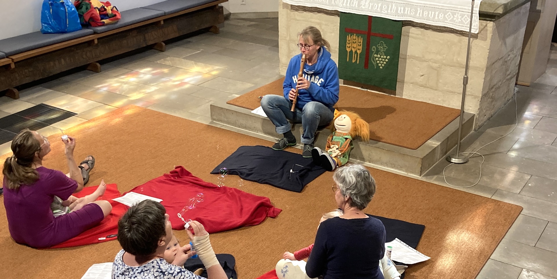 In entspannter Atmosphäre – möglichst im Kirchraum - singen die Teilnehmenden gemeinsam Kirchenlieder für die Babys, hören, tanzen, pusten Seifenblasen, trommeln und kuscheln.